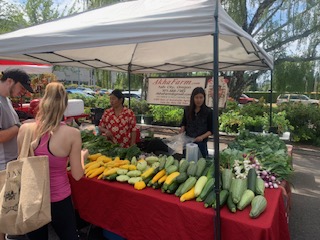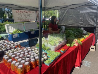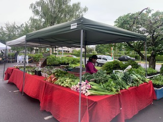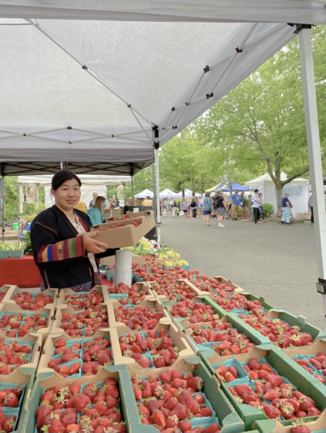 Mom in the market selling vegetables