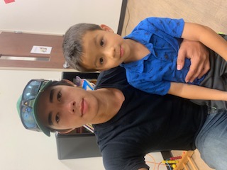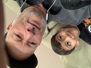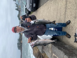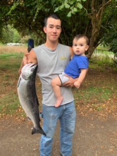 Victor with a salmon and his son